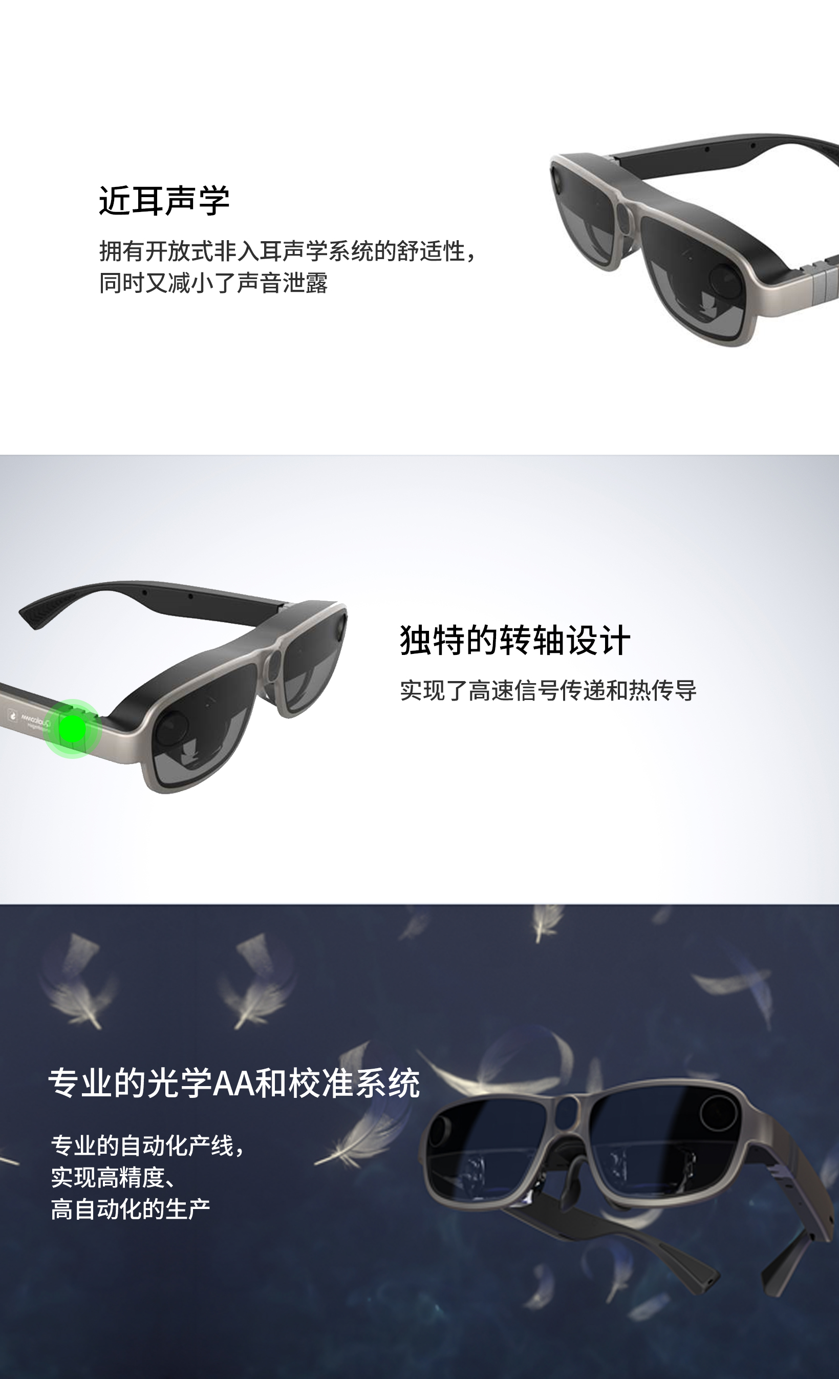 基于高通骁龙xr1平台的轻量级ar参考设计,采用自由曲面方案和1080p的micro-oled模组,为消费者和企业用户提供低功耗沉浸式体验ar设备和高性能生产力方案。