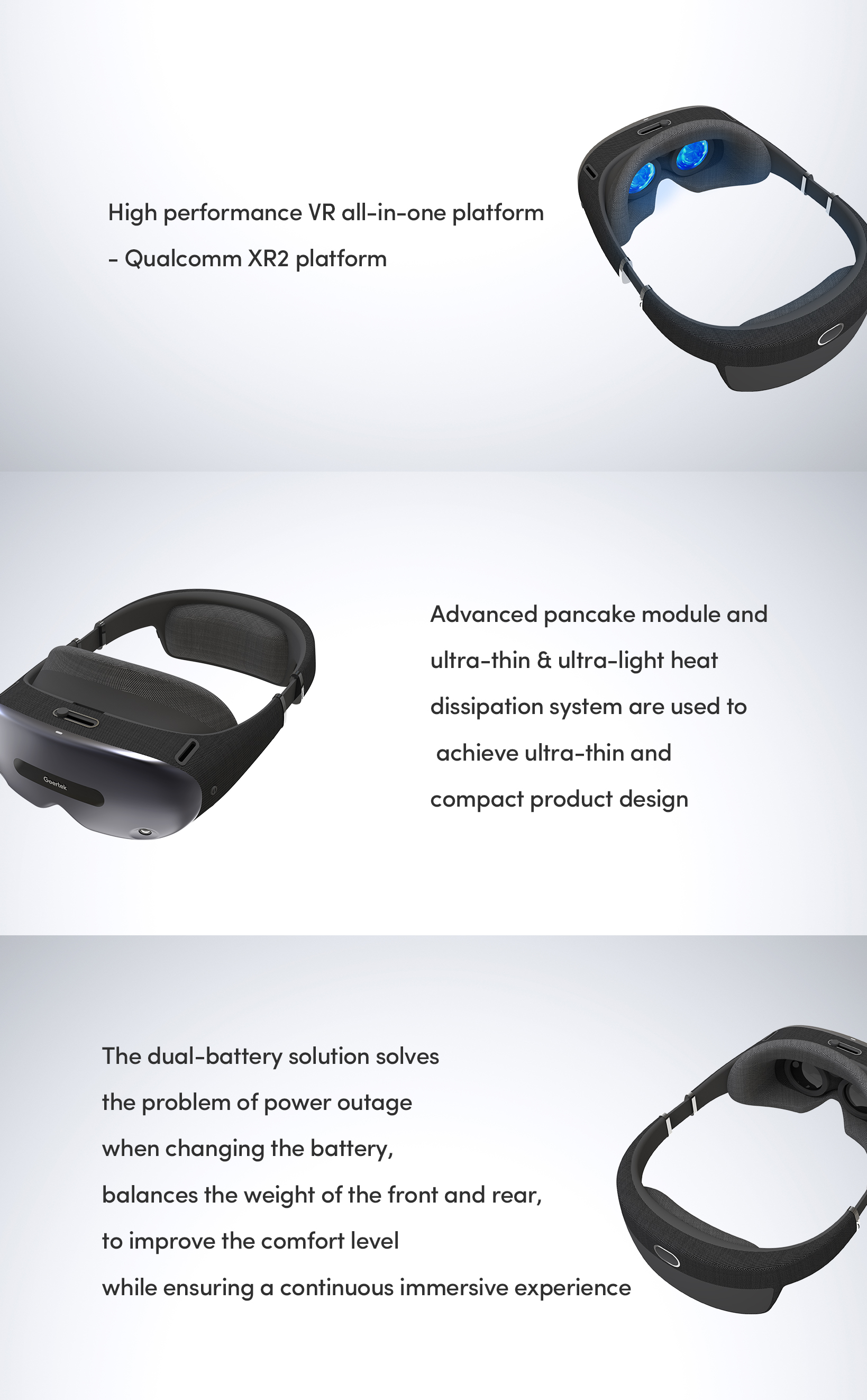 the vr all-in-one reference design based on qualcomm snapdragon xr2 platform, using pancake optical module to achieve ultra-thin and compact product design, providing an immersive experience for consumers and enterprises.